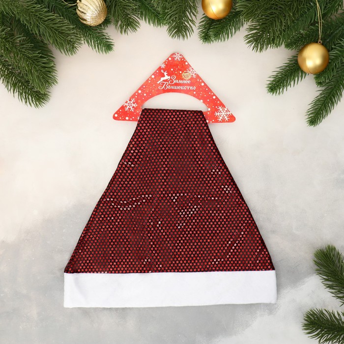 Колпак новогодний «Узор» с блеском, 26×38 см, красный