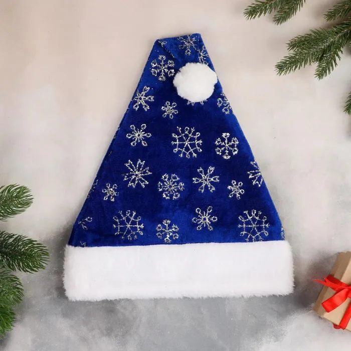 Колпак новогодний «Снегопад» с меховым кантом, 29×40 см, синий — Характеристики
