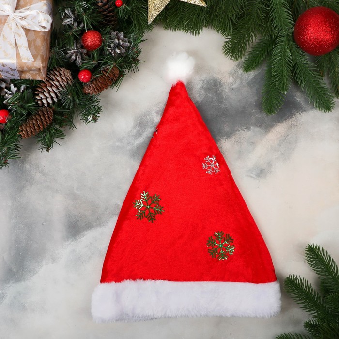 Колпак новогодний «Снежинка» 26×35 см, красный