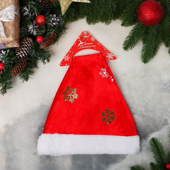 Колпак новогодний «Снежинка» 26×35 см, красный — Характеристики