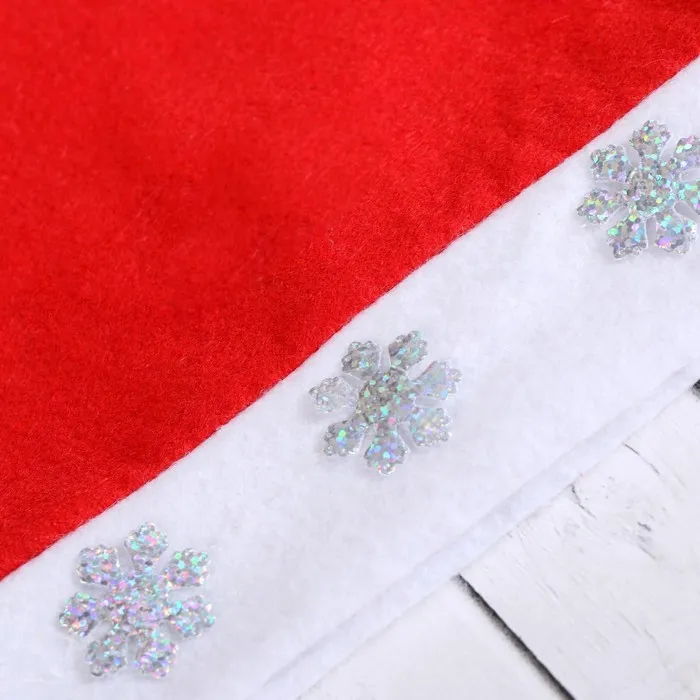 Размер изделия универсальный: аксессуар подойдёт как для ребёнка, так и для взрослого. А мягкий текстиль позволит носить колпак с комфортом на протяжении всей новогодней ночи.