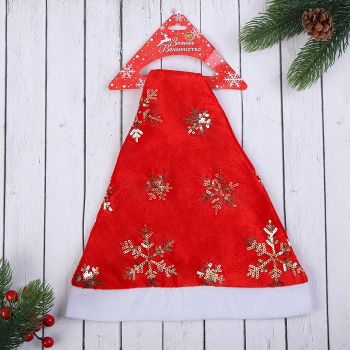 Колпак новогодний «Золотистые снежинки» 28×36 см, красный