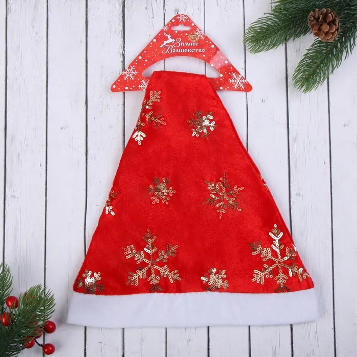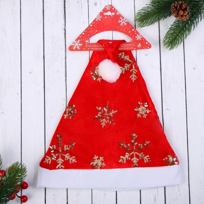 Колпак новогодний «Золотистые снежинки» 28×36 см, красный — Характеристики