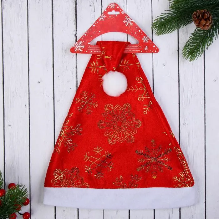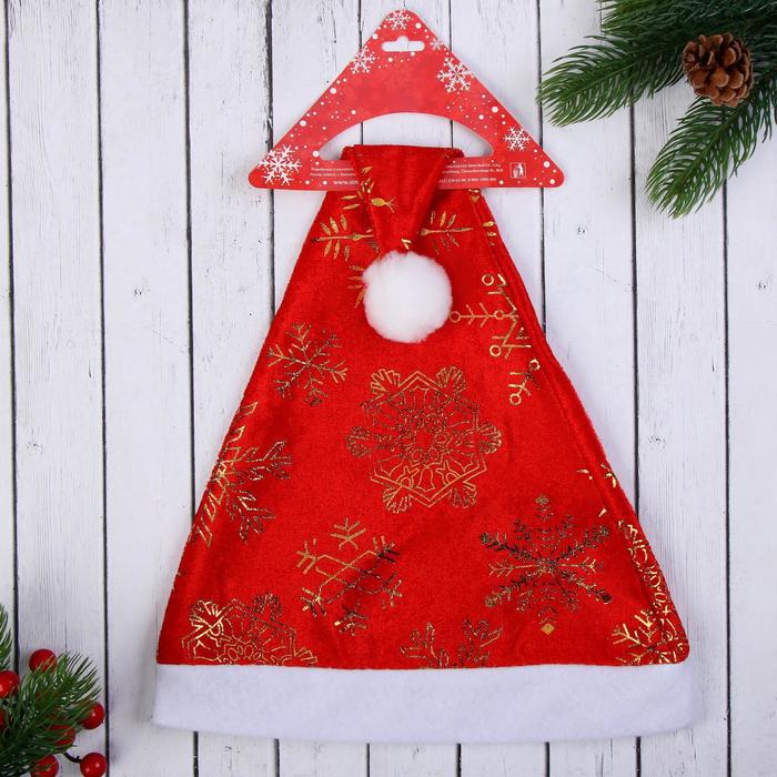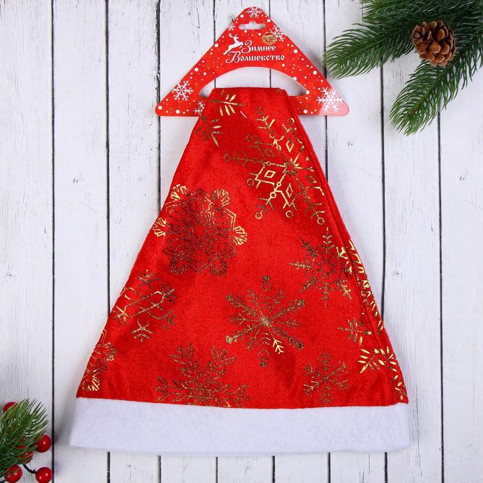 Колпак новогодний «Золотые снежинки» 39×27 см, красный