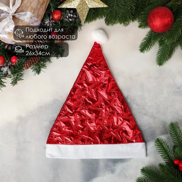 Колпак новогодний «Звёзды» 26×34 см, красный