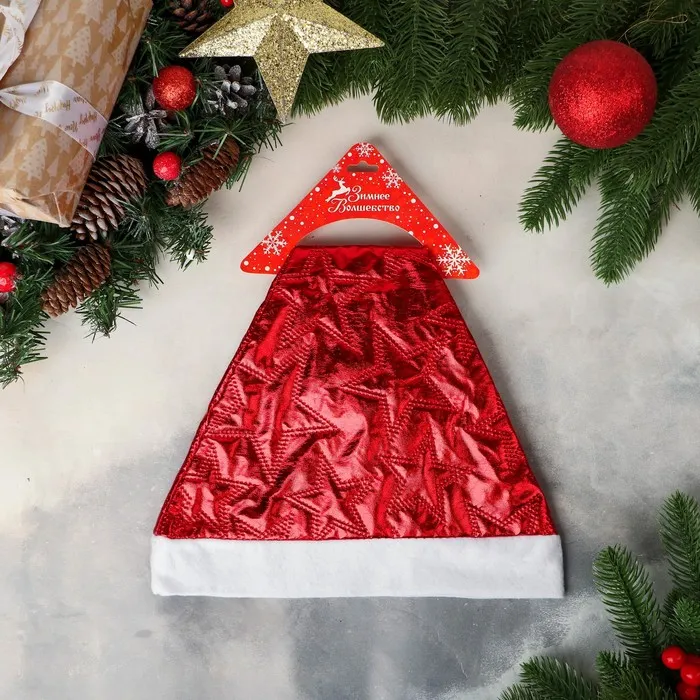 Колпак новогодний «Звёзды» 26×34 см, красный — Характеристики