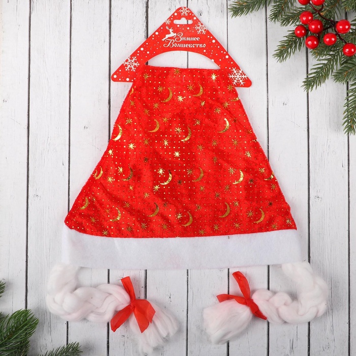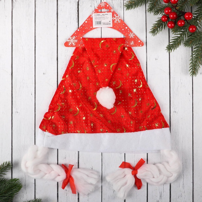 Колпак новогодний «Звёзды» с косами, красный — Характеристики