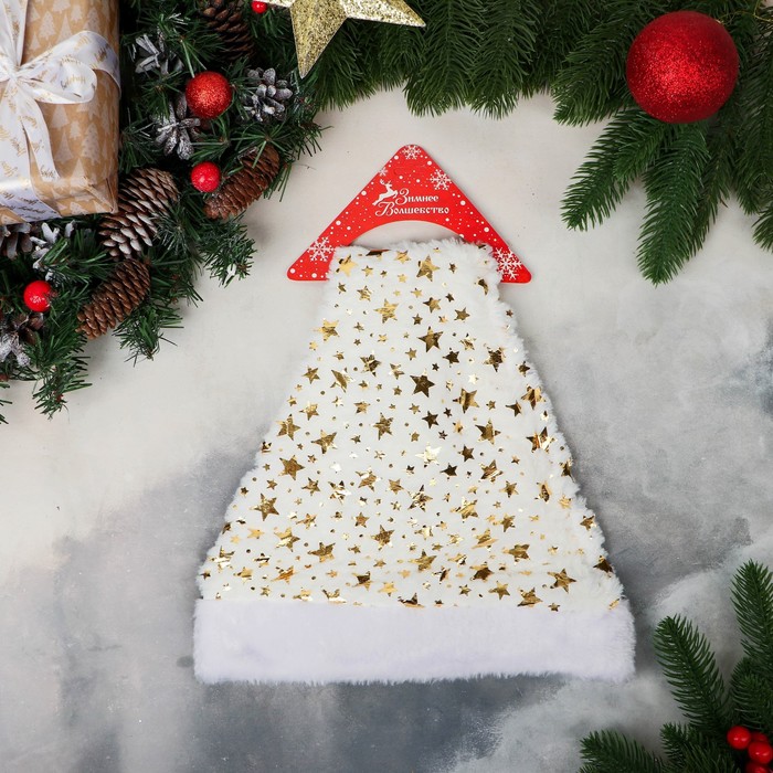 Размер изделия универсальный: аксессуар подойдёт как для ребёнка, так и для взрослого. А мягкий текстиль позволит носить колпак с комфортом на протяжении всей новогодней ночи.