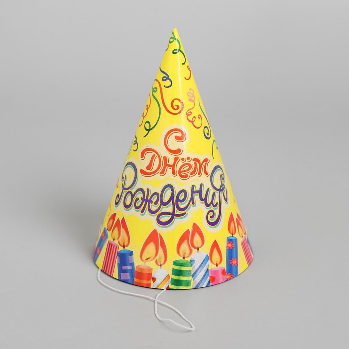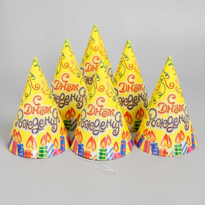 Колпак праздничный бумажный «С днём рождения!», набор 6 шт., 16 см