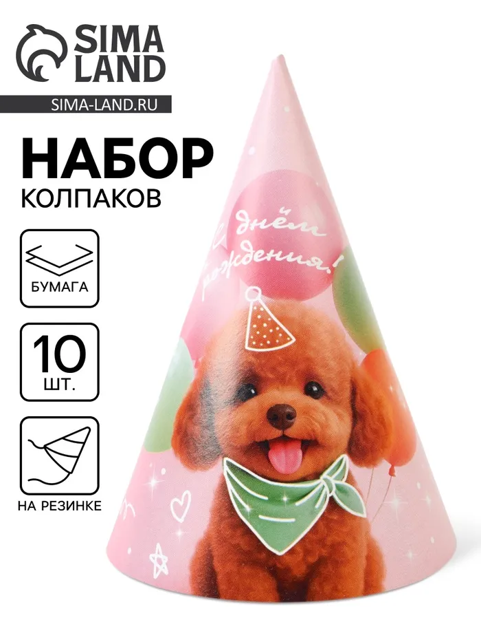 Колпак праздничный бумажный «С Днём рождения, собачка», розовый — Характеристики