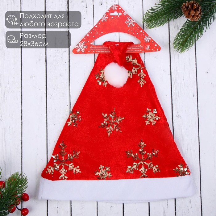Колпак новогодний «Снежинки» 28×35 см, красный