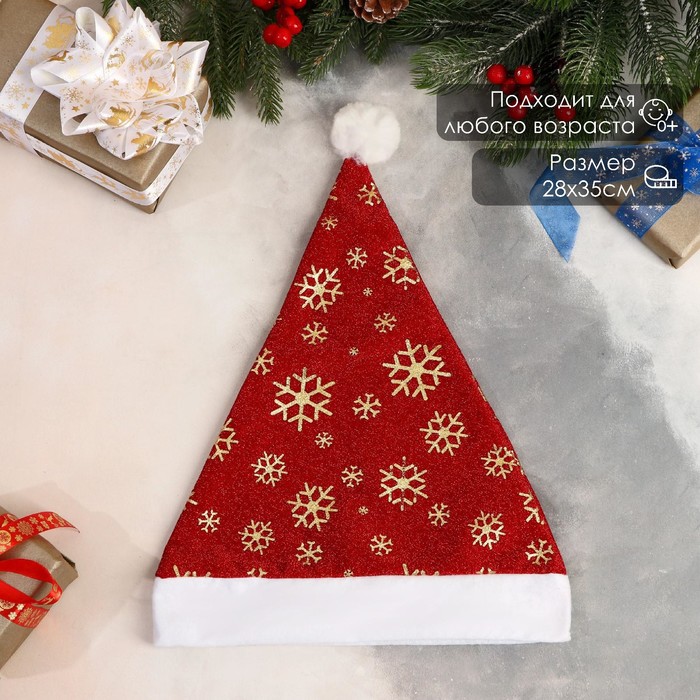 Колпак новогодний «Золотистые снежинки» 28×36 см, красный