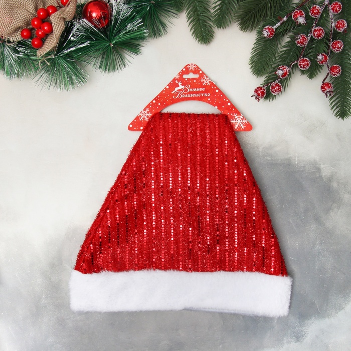 Колпак новогодний «Мерцающие полосы» 30×36 см, красный