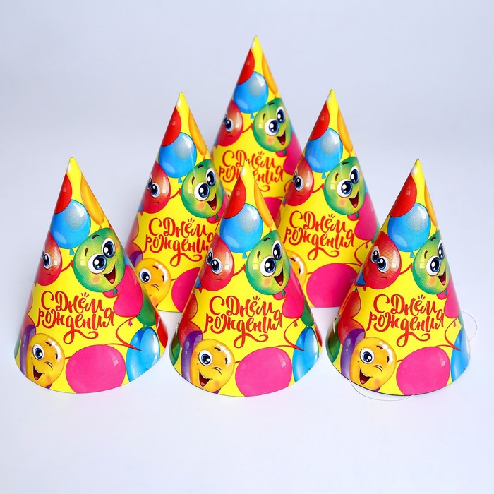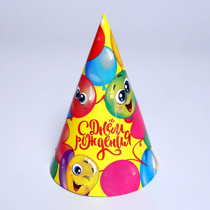 Колпак праздничный бумажный «С Днём Рождения», весёлые шары