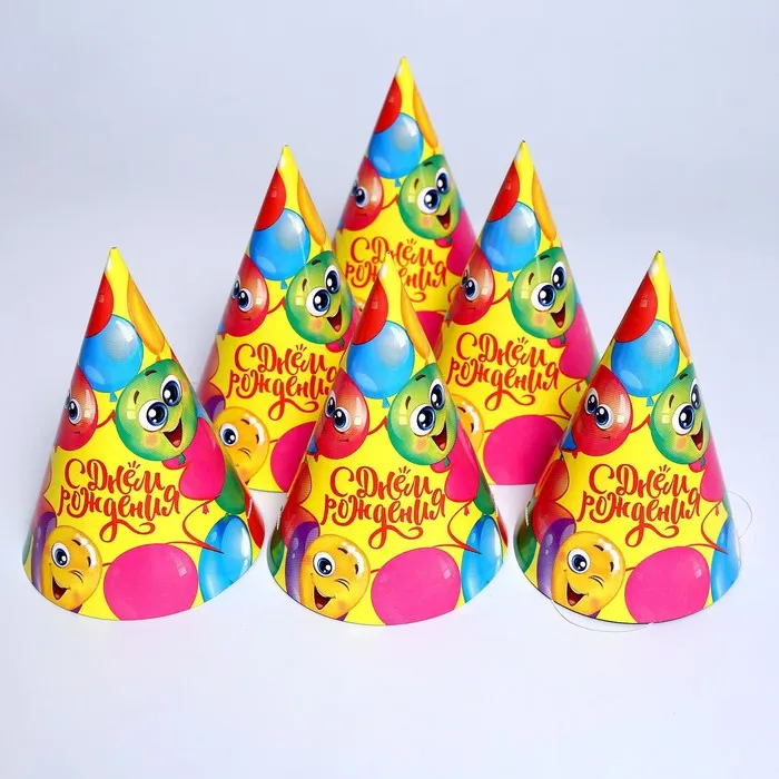 Колпак праздничный бумажный «С Днём Рождения», весёлые шары — Характеристики