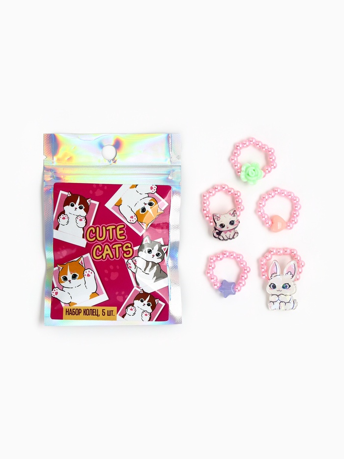 Кольца детские с бусинами «Милые котики», 1.5 см