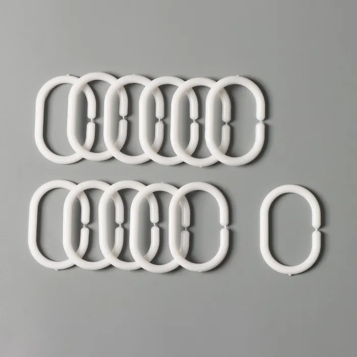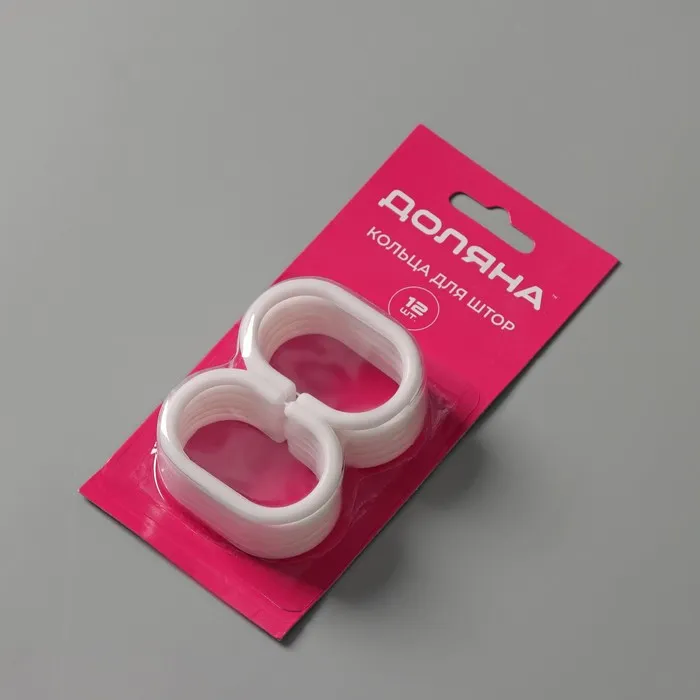 Кольца для штор Доляна, в ванную, пластик, 12 шт., 5.7×3.8 см, белые