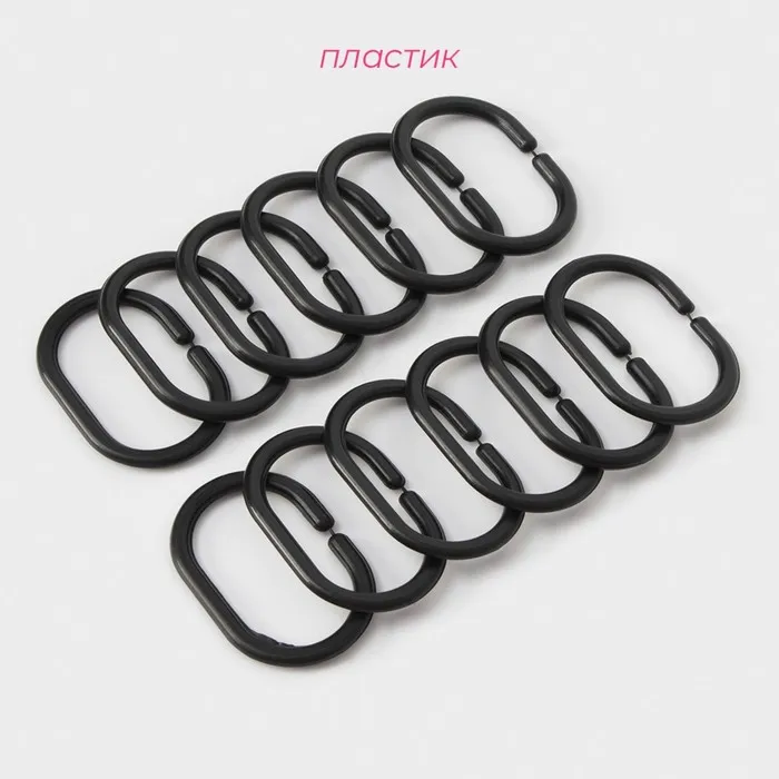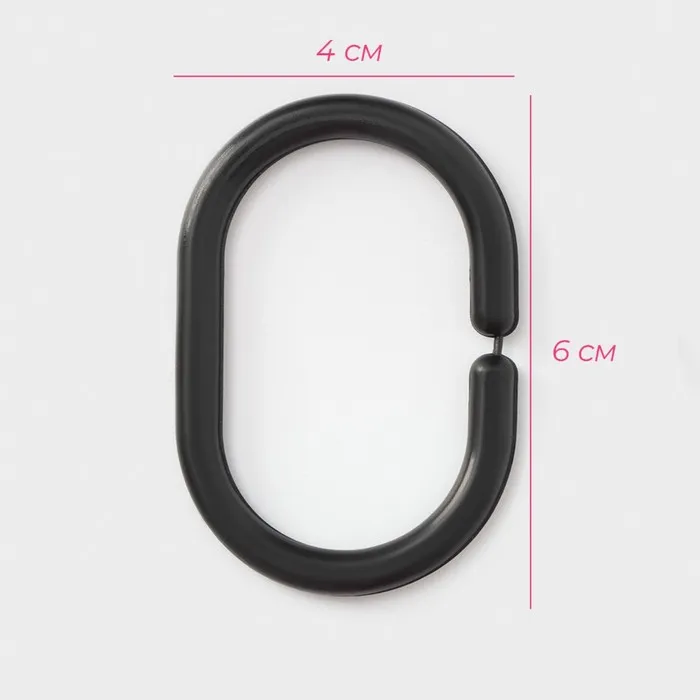 Кольца для штор Доляна, в ванную, пластик, 12 шт., 5.9×3.9 см, чёрные — Характеристики