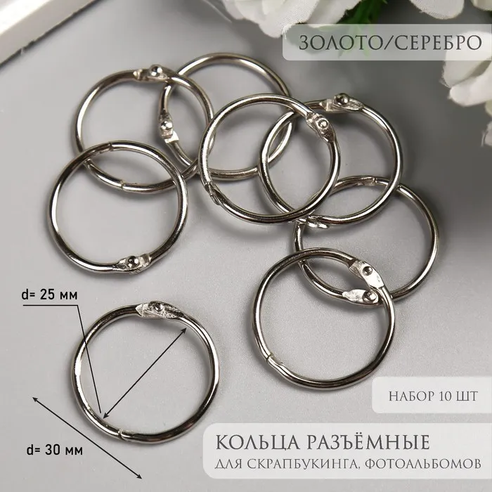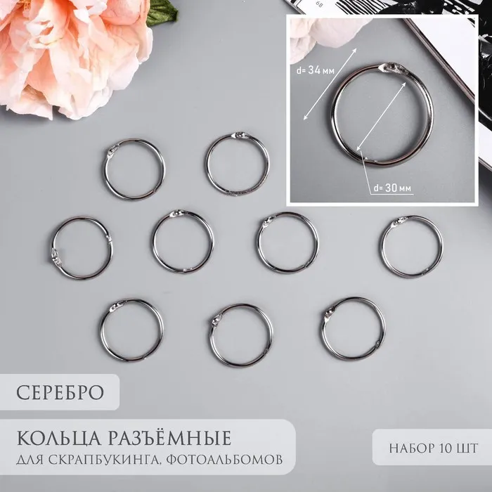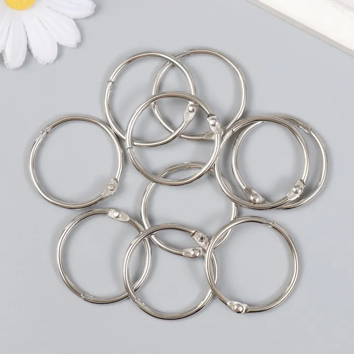 Кольца для творчества для фотоальбомов "Серебро" внутр. d= 3 см внешн. d=3,4 см набор 10 шт