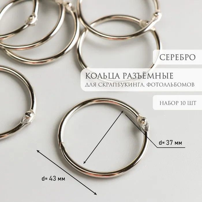 Кольца для творчества (фотоальбомов) "Серебро" внутр. d= 3,7 см внешн. d=4,3 см н-р 10 шт