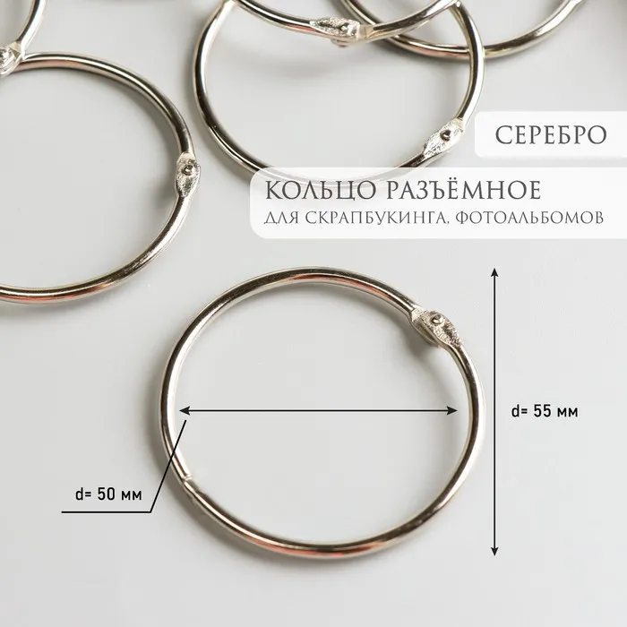 Кольца для творчества для фотоальбомов "Серебро" внутр. d= 3 см внешн. d=3,4 см набор 10 шт — Характеристики