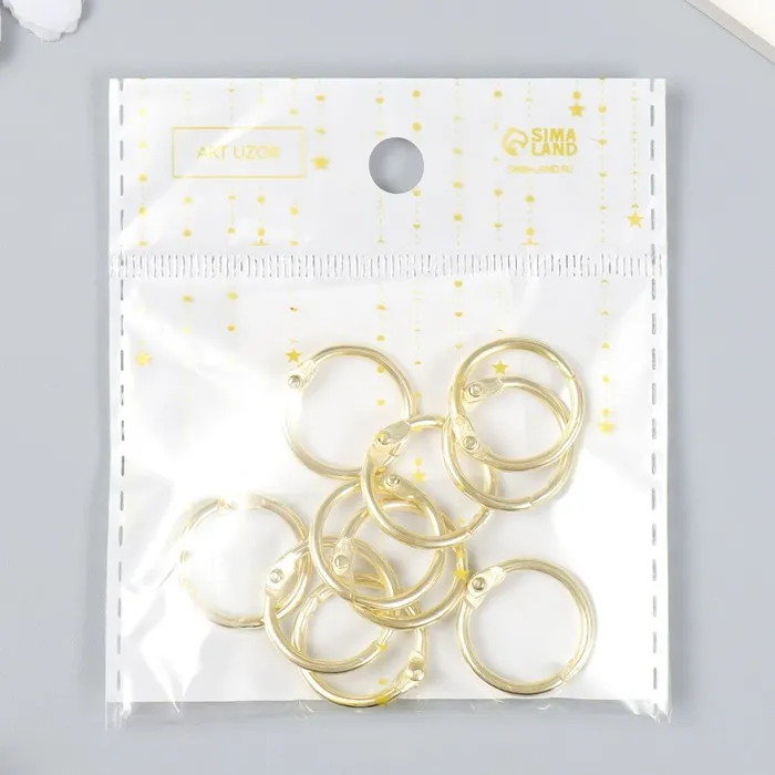 Кольца для творчества (для фотоальбомов) "Золото" внутр. d= 1,5 см внешн. d=2 см набор 10 шт