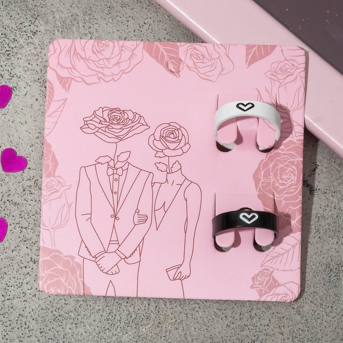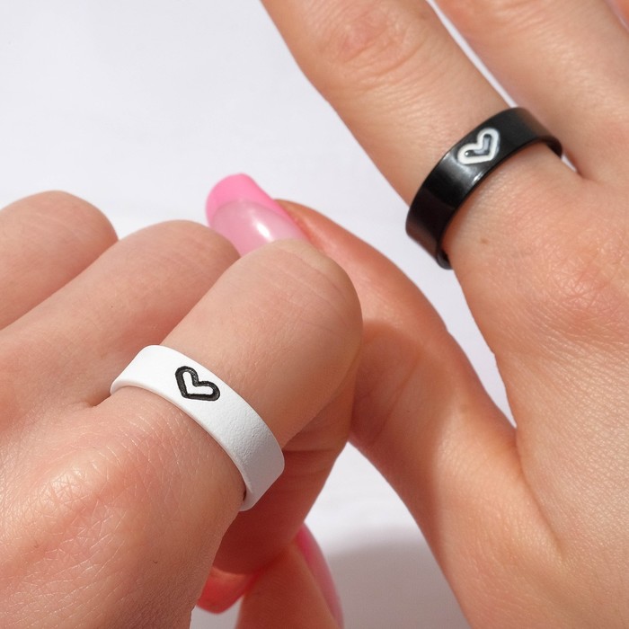Кольца парные «Сердца инь-ян», 2 шт., размер микс, чёрно-белое — Характеристики