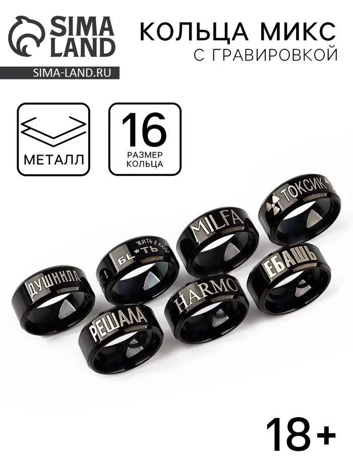Кольца с гравировкой, 1.6 см, 18+, МИКС — Характеристики