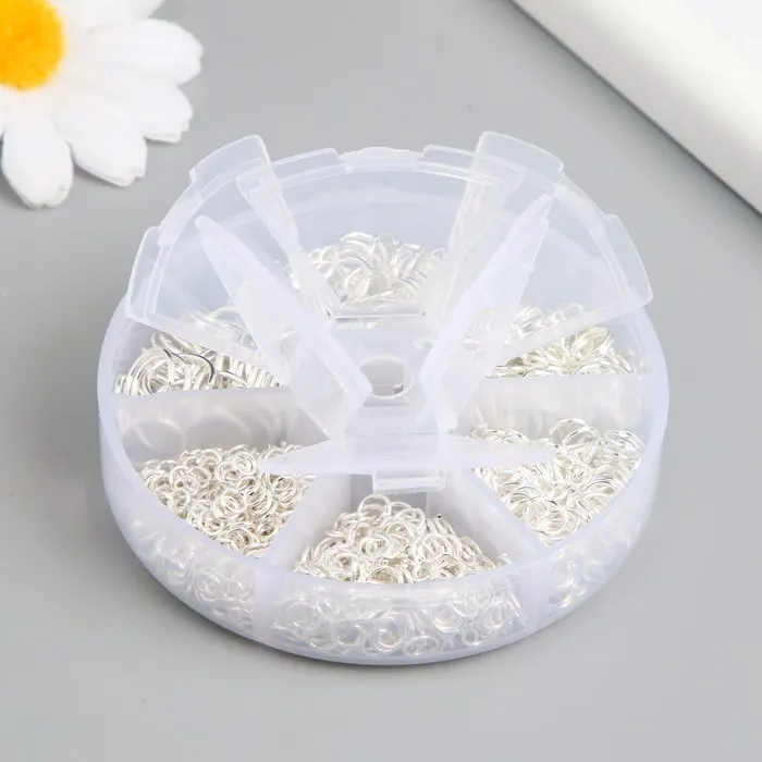 Кольца зажимные металл в шкатулке "Серебро" 880 шт 8х8х2 см — Характеристики