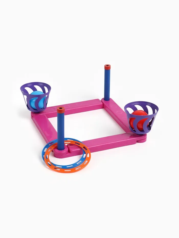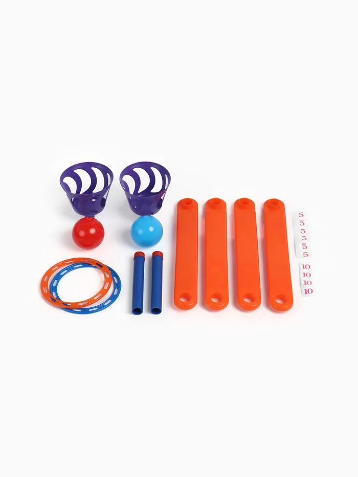 Детская игра "Кольцеброс и шароброс" - это увлекательная активная игра для детей и взрослых, в которой игрок бросает мячик и кольцо в корзинки (ловушки) и вертикальные стойки.
