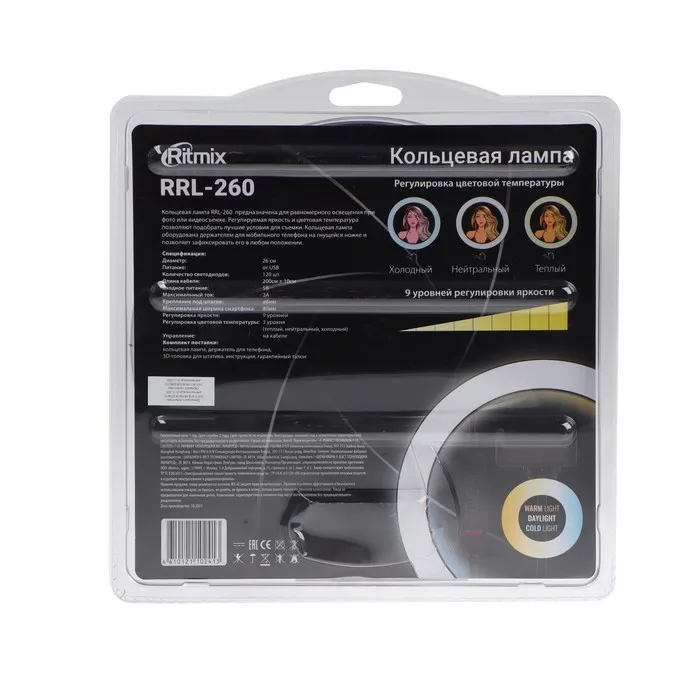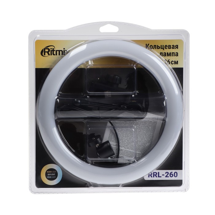 Кольцевая лампа Ritmix RRL-260, 26 см, USB, 3 цвета, 120 светодиодов, пульт, держатель — Характеристики