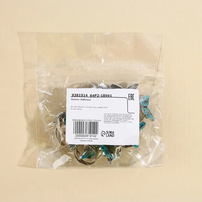 Кольцо «Бабочка», 1,5 х 1 х 2 см , 20 шт — Характеристики