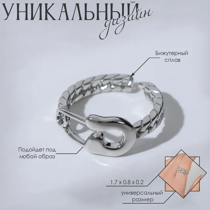 Кольцо безразмерное «Булавка», цвет серебро — Характеристики