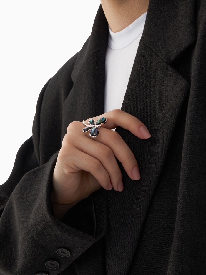 Кольцо безразмерное «Стрекоза», галиотис, зелёное в серебре — Характеристики
