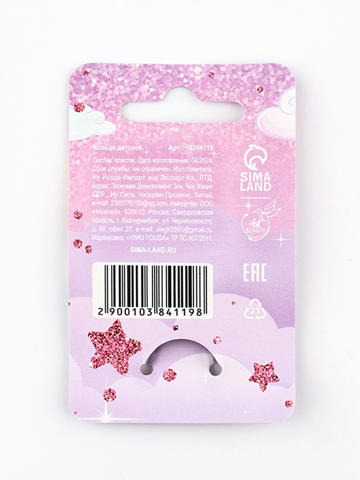 Кольцо детское крутящееся «Ты чудо», единорог — Характеристики