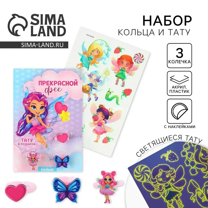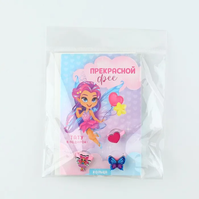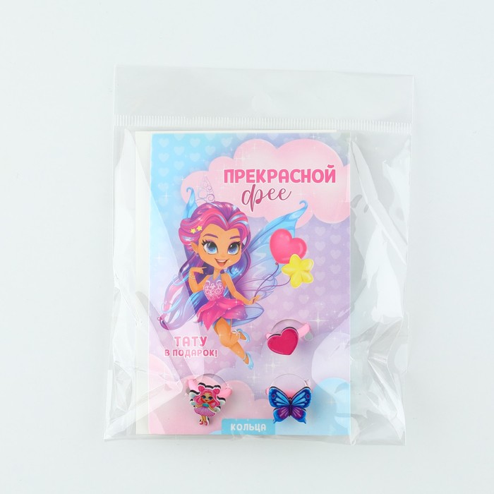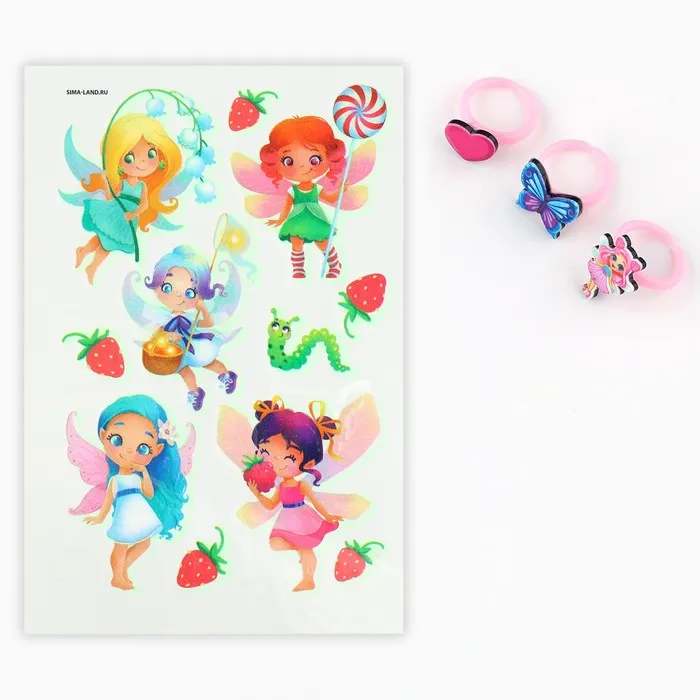 Кольцо детское «Прекрасной фее» 3 шт., и переводные татуировки, 8×12 см — Характеристики