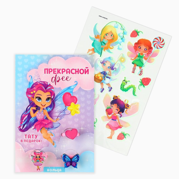 Кольцо детское «Прекрасной фее» 3 шт., и переводные татуировки, 8×12 см
