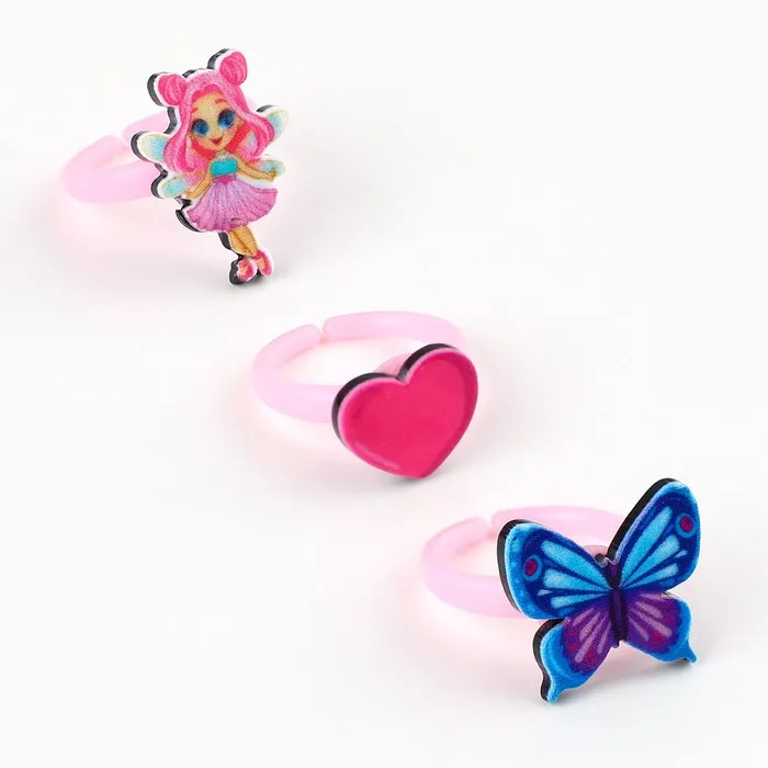 В нашем наборе детских колец есть множество различных аксессуаров, которые подойдут маленькими девочками. Кольца (бижутерия) сделаны из высококачественного гипоаллергенного бижутерного сплава и пластика, который не нанесет вреда коже ребенка. Кольца для девочек имеют форму популярных фигурок для этого возраста, от единорогов и зайчиков до сердец и радуг. Детские украшения прекрасно подойдут в качестве подарка на любой праздник и могут быть ношены на каждый день или на особые мероприятия, такие как выпускной из детского сада или день рождения.