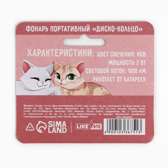 Кольцо детское световое «Новый год: Котики», 3 х 2,5 см