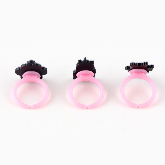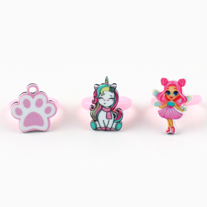 В нашем наборе детских колец есть множество различных аксессуаров, которые подойдут маленькими девочками. Кольца (бижутерия) сделаны из высококачественного гипоаллергенного бижутерного сплава и пластика, который не нанесет вреда коже ребенка. Кольца для девочек имеют форму популярных фигурок для этого возраста, от единорогов и зайчиков до сердец и радуг. Детские украшения прекрасно подойдут в качестве подарка на любой праздник и могут быть ношены на каждый день или на особые мероприятия, такие как выпускной из детского сада или день рождения.