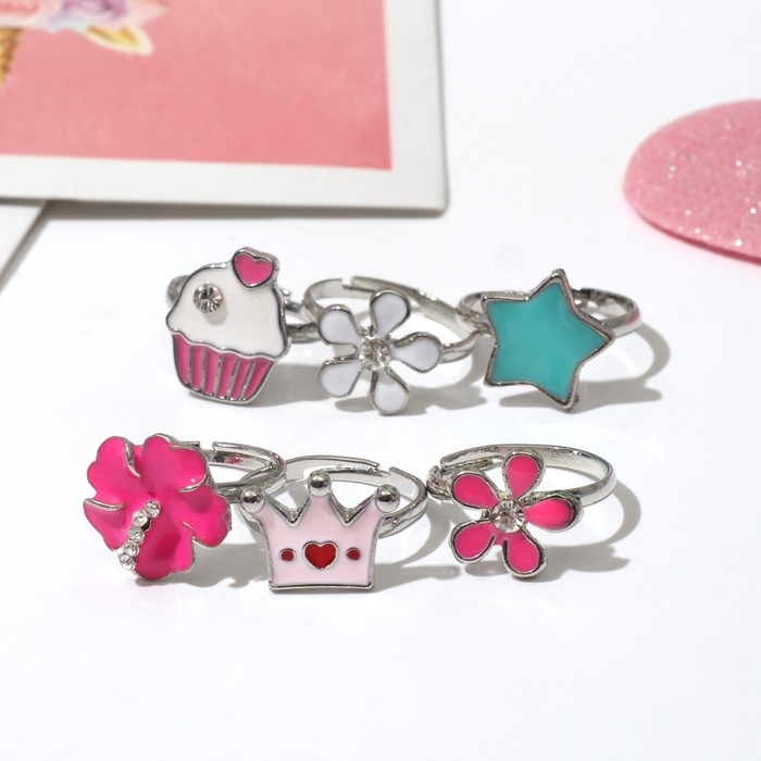 Кольцо детское Выбражулька «Ассорти для девочек», форма МИКС, МИКС, безразмерное