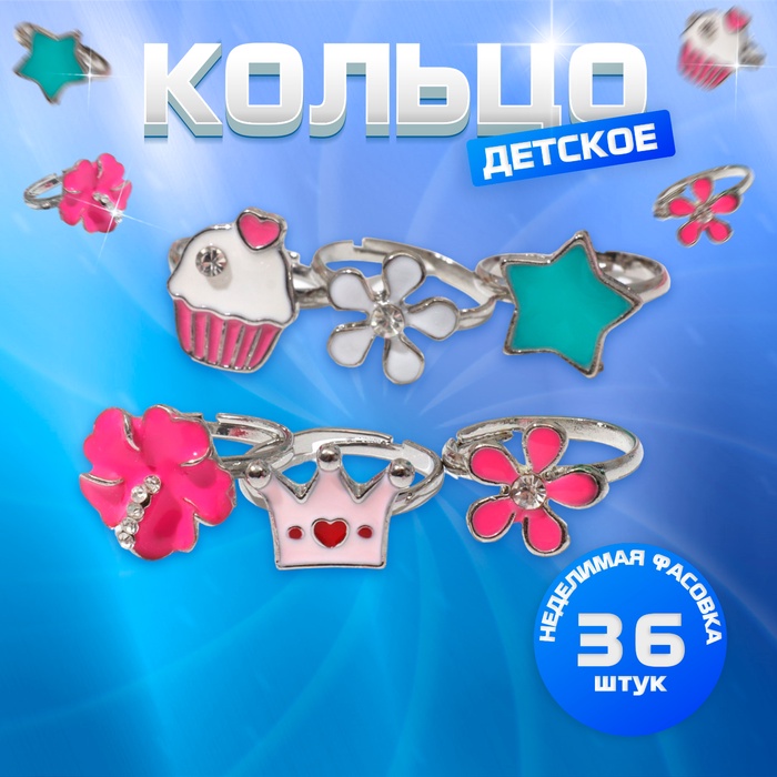 Кольцо детское Выбражулька «Ассорти для девочек», форма МИКС, МИКС, безразмерное — Характеристики
