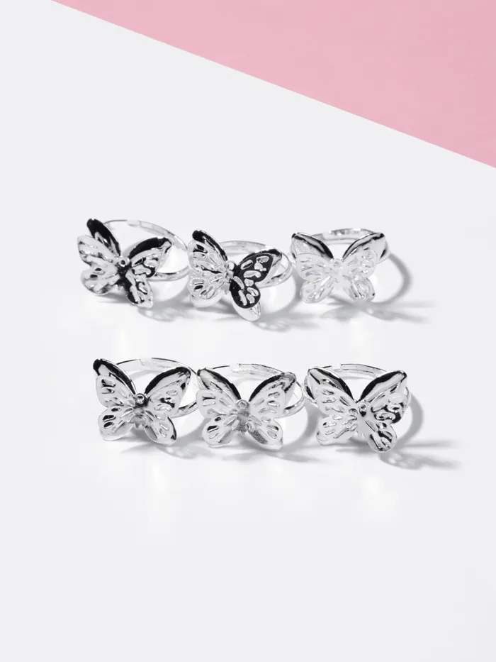 Погрузите свою маленькую модницу в мир волшебства и красоты с очаровательным кольцом в форме бабочки! Это безразмерное кольцо, выполненное из бижутерного сплава с серебряным оттенком, станет идеальным аксессуаром для девочек, которые любят яркие и стильные украшения.