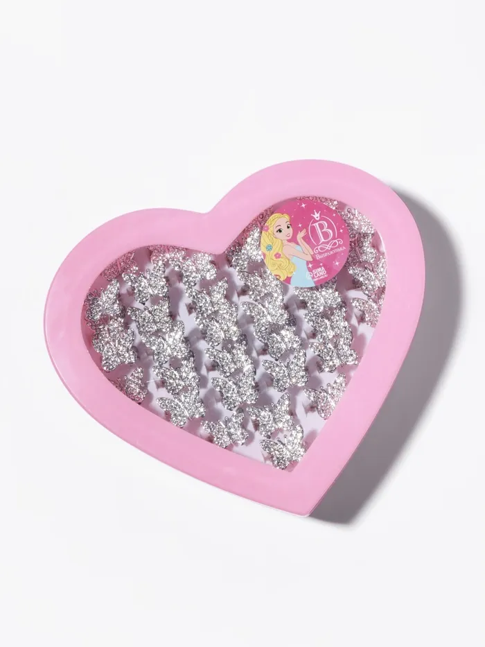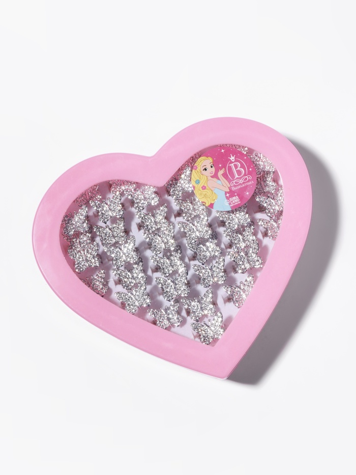 - Очаровательный дизайн: белый цвет и серебряная фурнитура создают нежный и стильный образ, а бабочка с блестящими стразами добавляет изюминку.