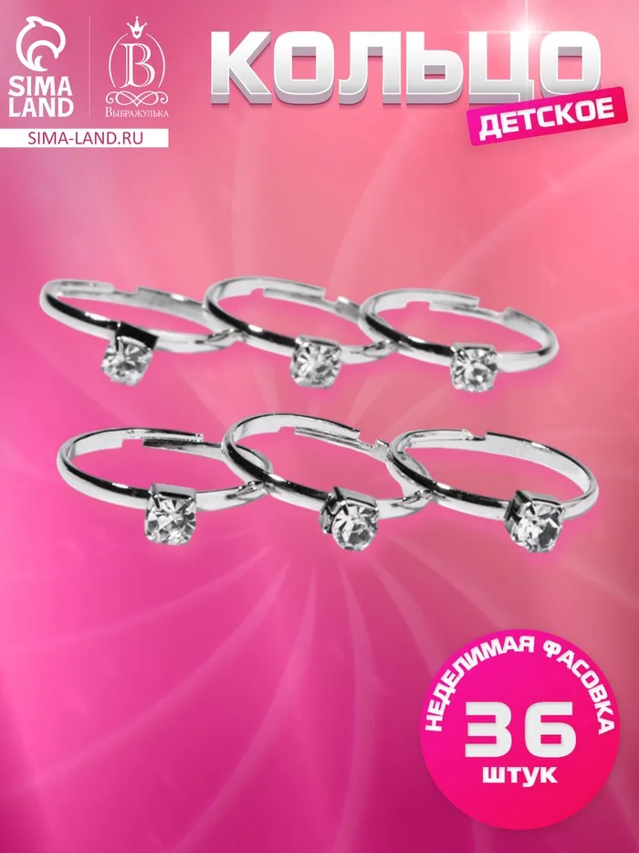 Кольцо детское Выбражулька «Как у мамы», кристалл 4 мм, белое в серебре, безразмерное — Характеристики