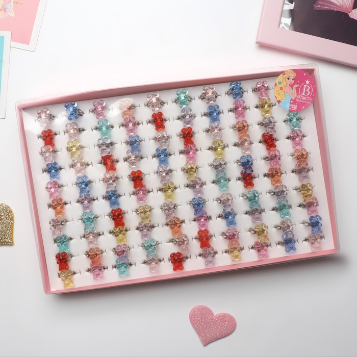 Кольцо детское Выбражулька «Мармеладный мишка», МИКС в серебре, безразмерное