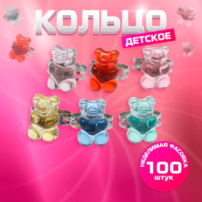 Кольцо детское Выбражулька «Мармеладный мишка», МИКС в серебре, безразмерное — Характеристики