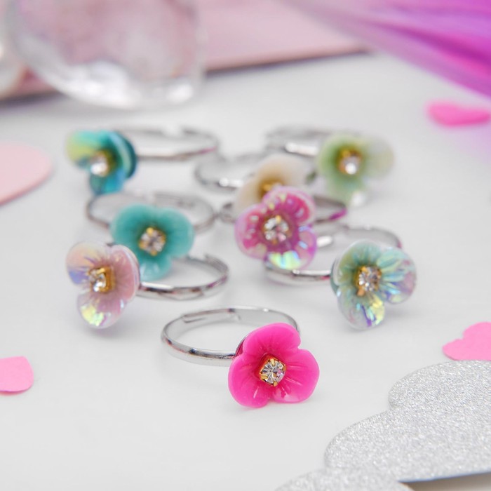 Кольцо детское Выбражулька «Орхидея», МИКС в серебре