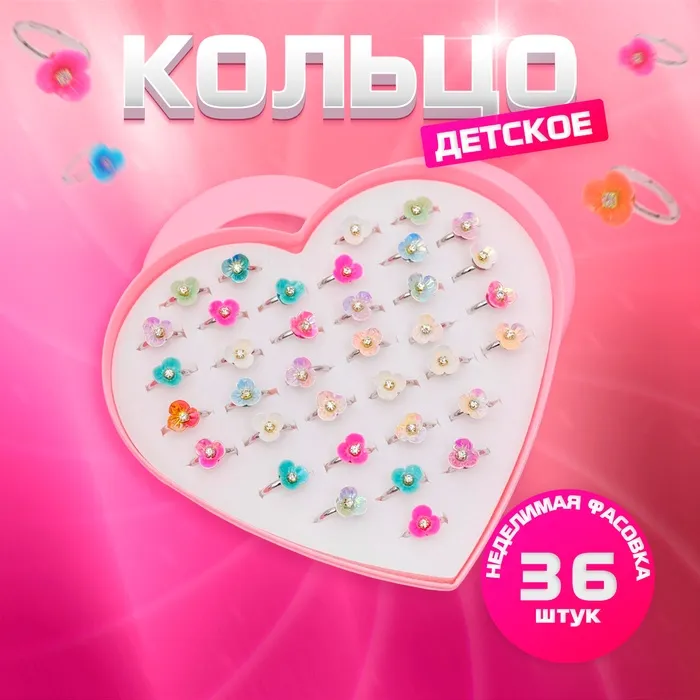 Кольцо детское Выбражулька «Орхидея», МИКС в серебре — Характеристики