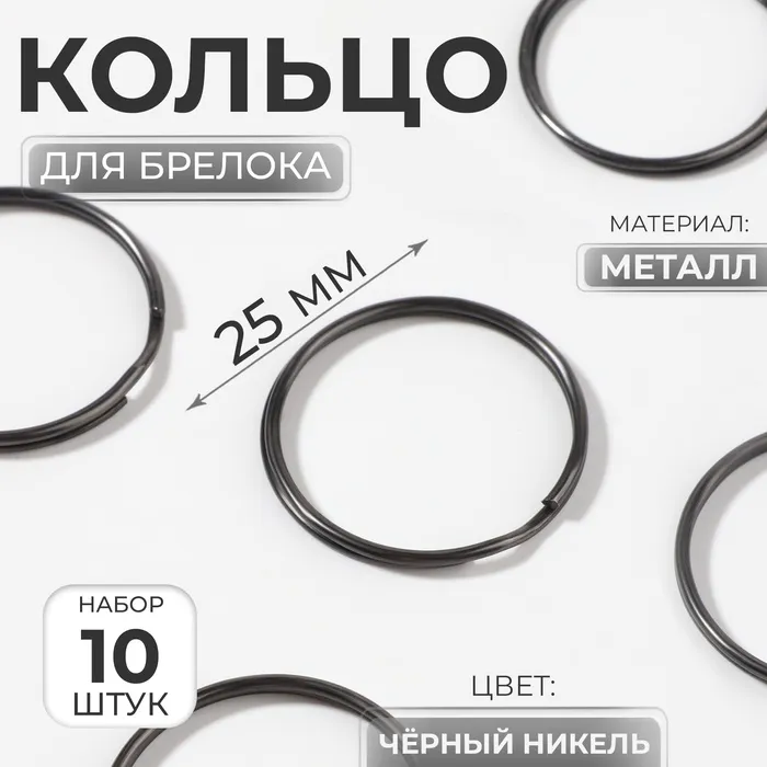 Кольцо для брелока, d=25 мм, 10 шт., цвет чёрный никель — Характеристики